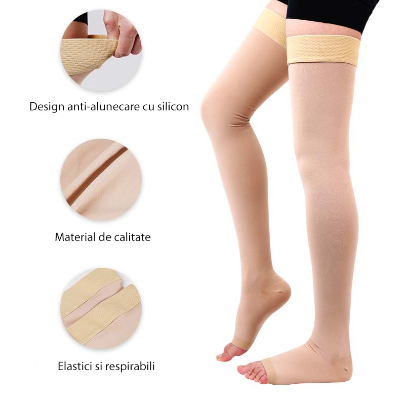 Ciorapi compresivi medicinali AD pana la genunchi, Varf deschis, Clasa II, 23-32mmHg, Bej, L